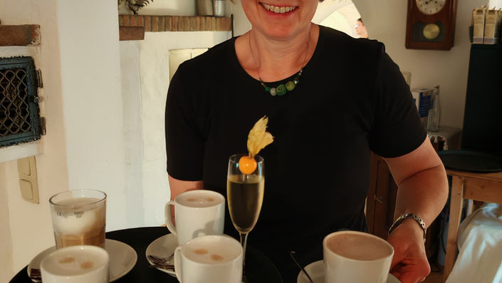 Bei uns geht’s no richtig familiär zua: Im Hofcafé wartn selbstgemachte Kuchen, frischer Kaffee und a guade Portion Herzlichkeit auf di. Da sitzt ma beinand, ratscht a bisserl und gfreit se über de scheene Auszeit am Hof.